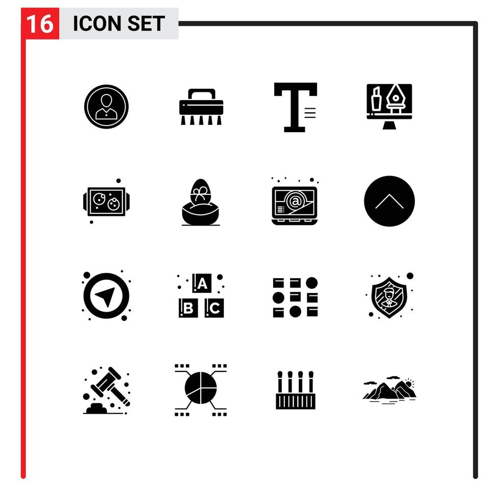 16 Thematic Vector Solid Glyphs and Editable Symbols of computer editing cleaning tools write Editable Vector Design Elements Free Vector