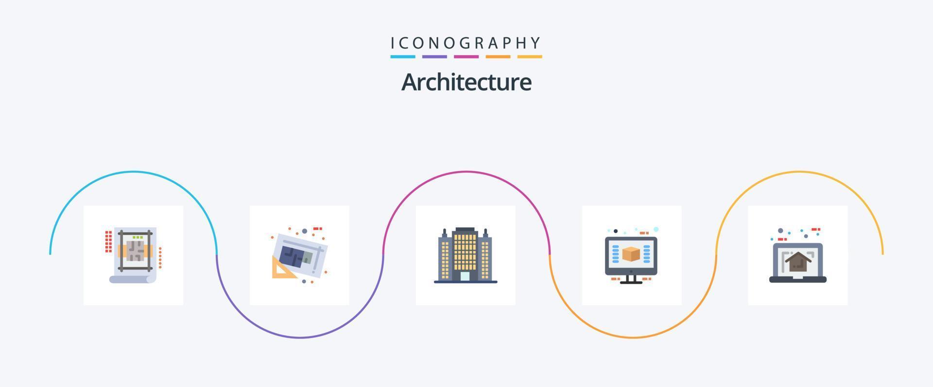 Architecture Flat 5 Icon Pack Including render. computer. plan. architecture. hotel vector