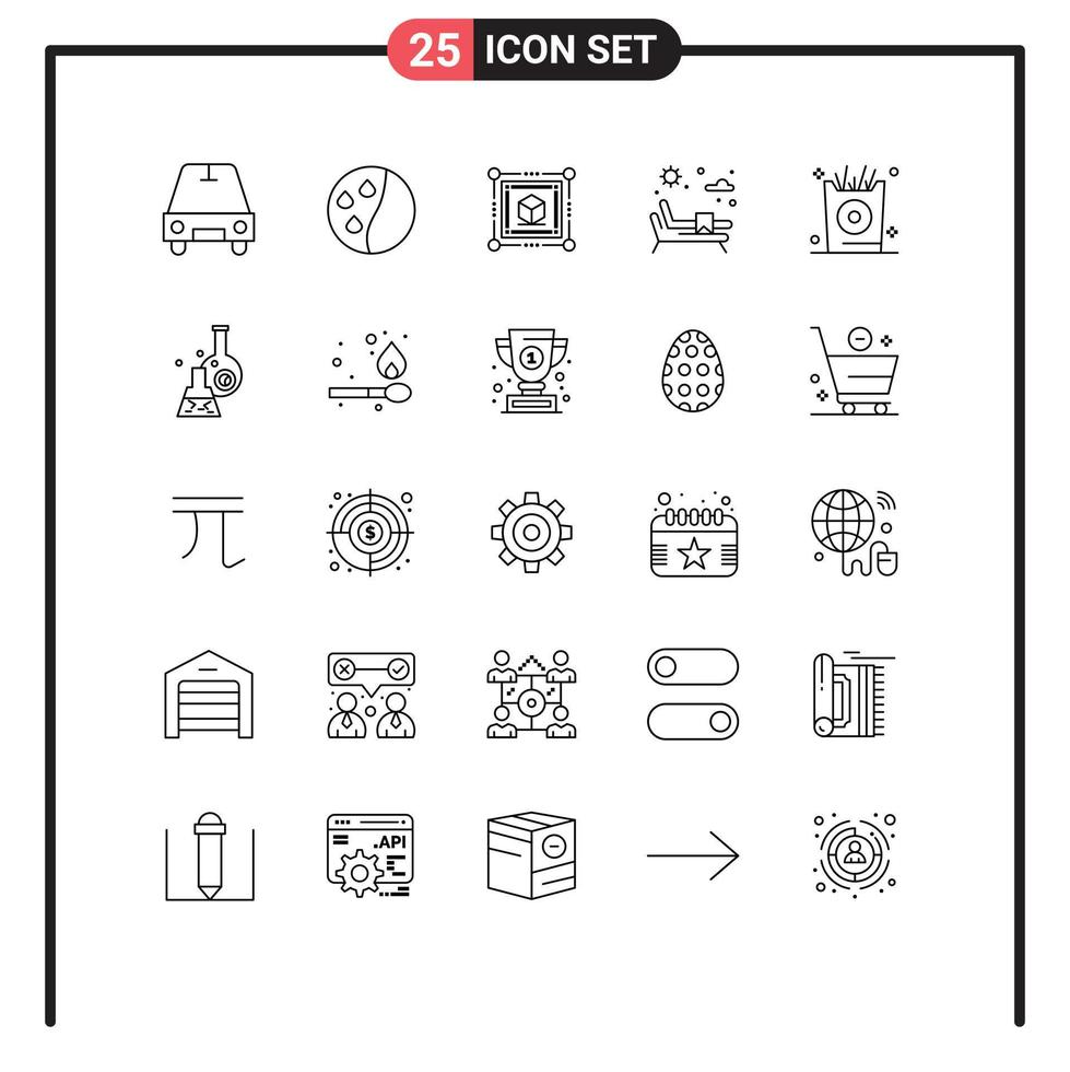 User Interface Pack of 25 Basic Lines of lab party web kid fries Editable Vector Design Elements Free Vector