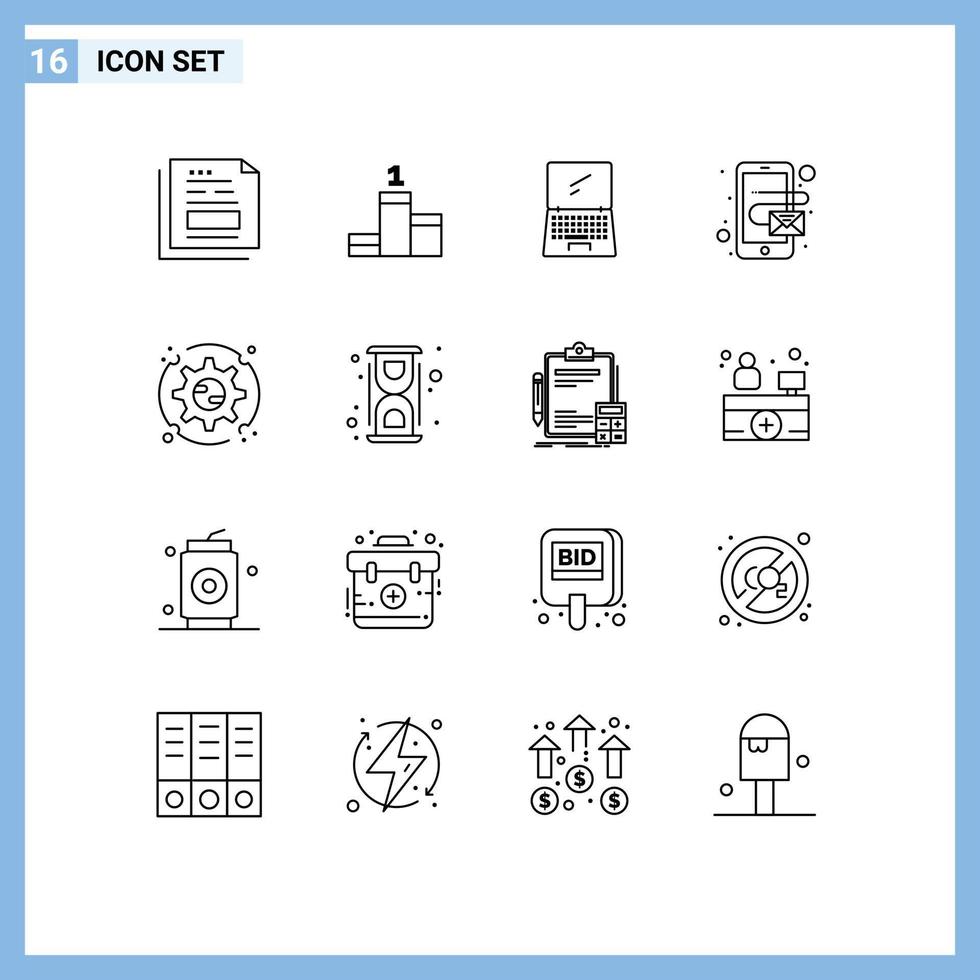 16 Creative Icons Modern Signs and Symbols of setting mobile computer email mobile Editable Vector Design Elements