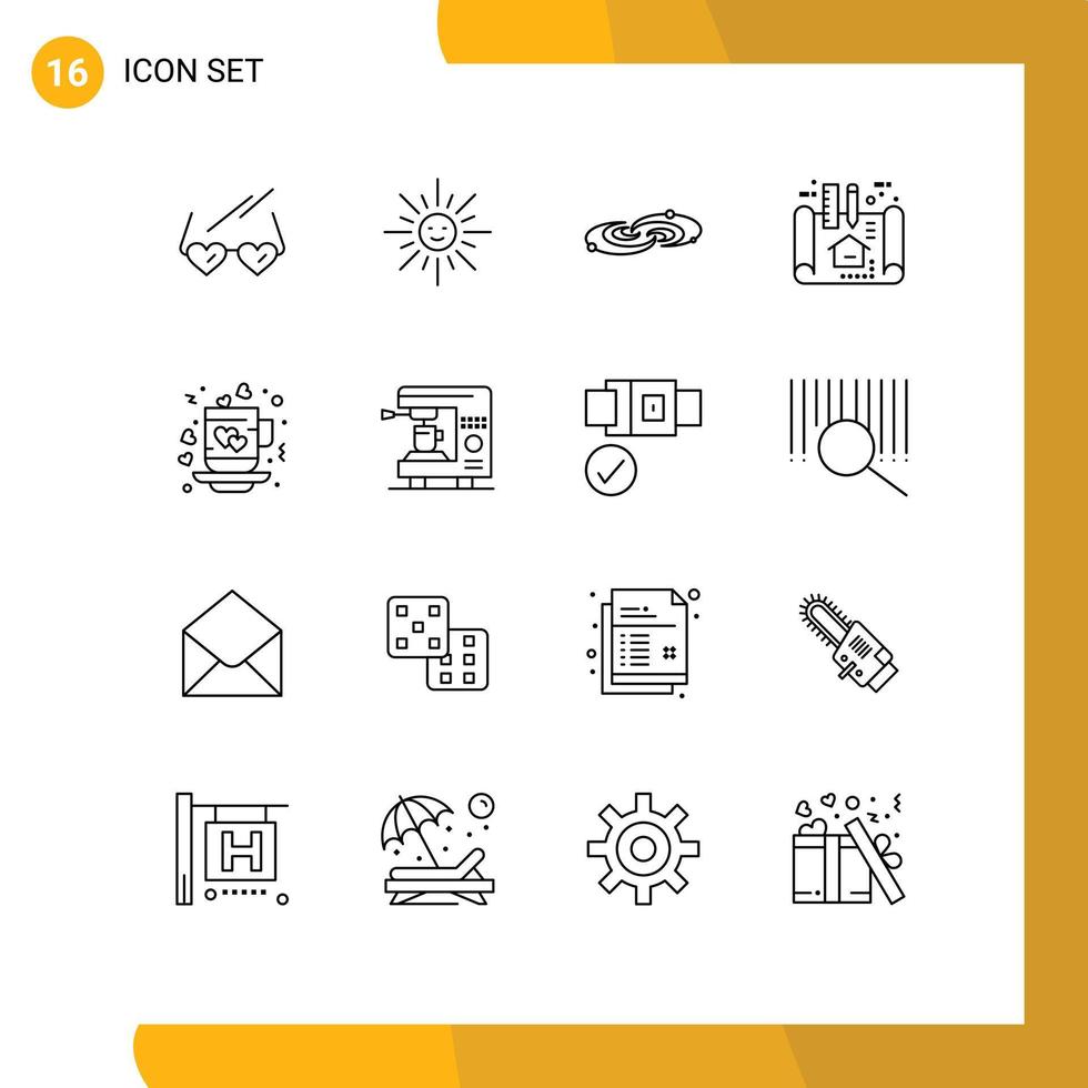 Editable Vector Line Pack of 16 Simple Outlines of coffee plan galaxy architecture universe Editable Vector Design Elements