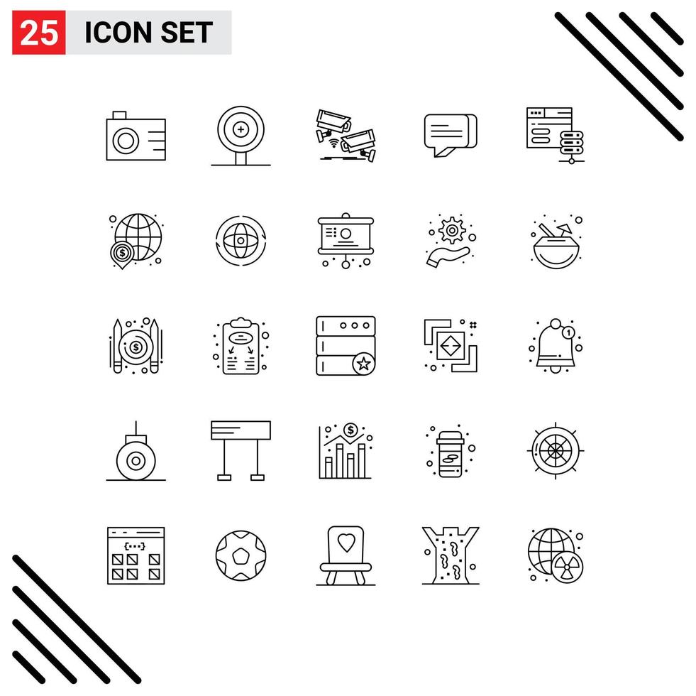 Group of 25 Modern Lines Set for web network server security database communication Editable Vector Design Elements Free Vector