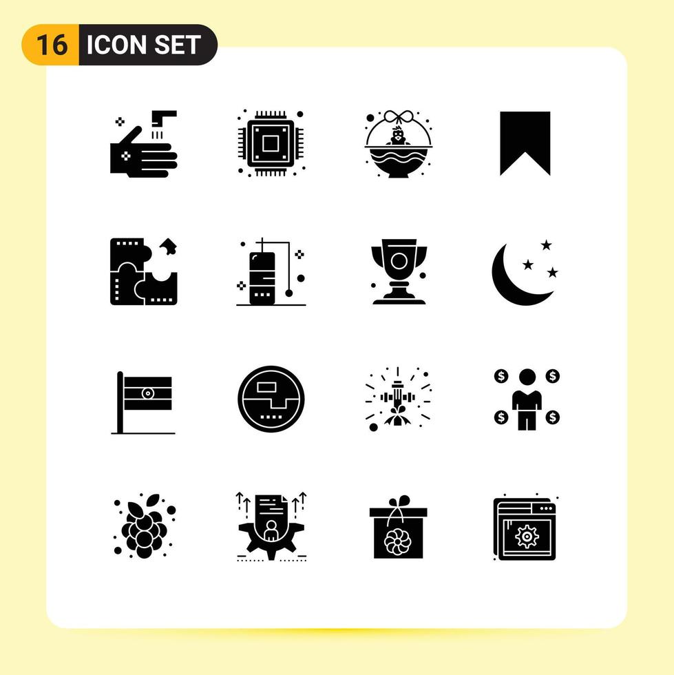 Group of 16 Modern Solid Glyphs Set for app save cart interface flag Editable Vector Design Elements Free Vector and Free SVG