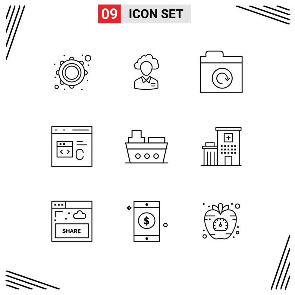 Set of 9 Commercial Outlines pack for develop code manager c refresh Editable Vector Design Elements Free Vector