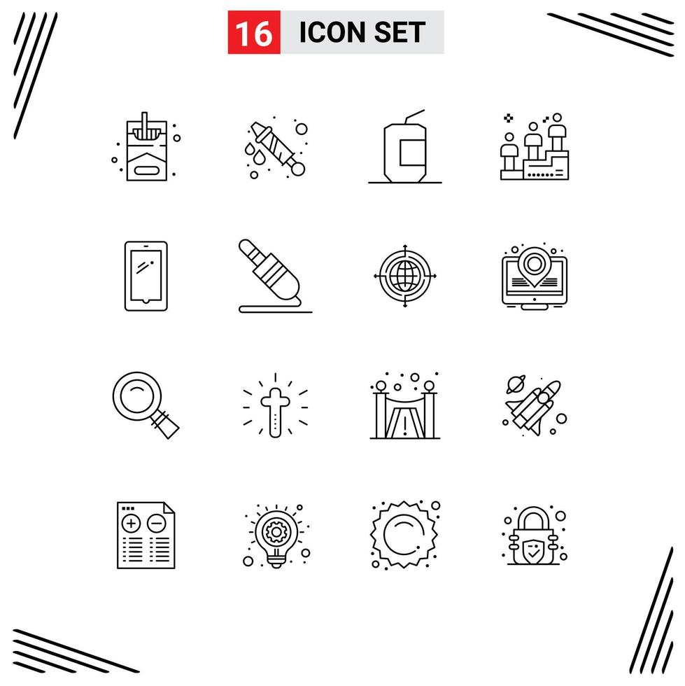 16 Universal Outlines Set for Web and Mobile Applications mobile phone drink man podium race Editable Vector Design Elements Free Vector