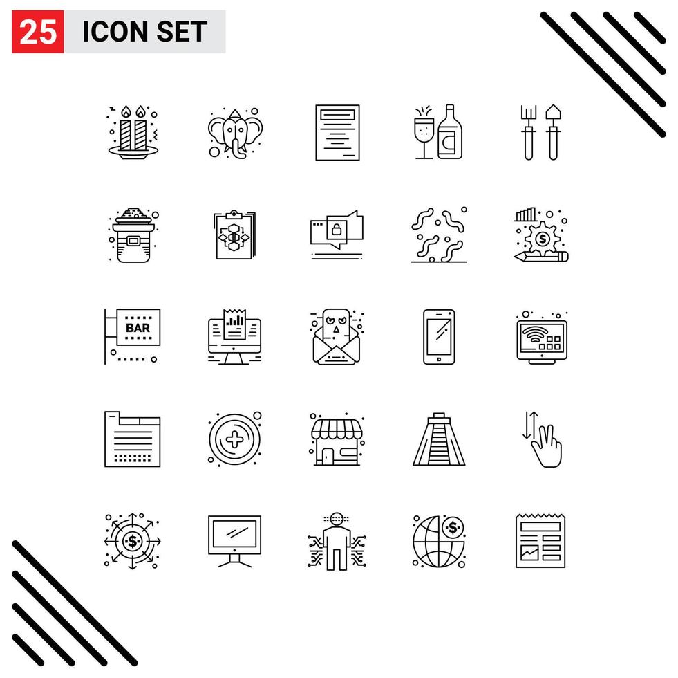 Modern Set of 25 Lines and symbols such as rake garden book ddrink bottle Editable Vector Design Elements Free Vector
