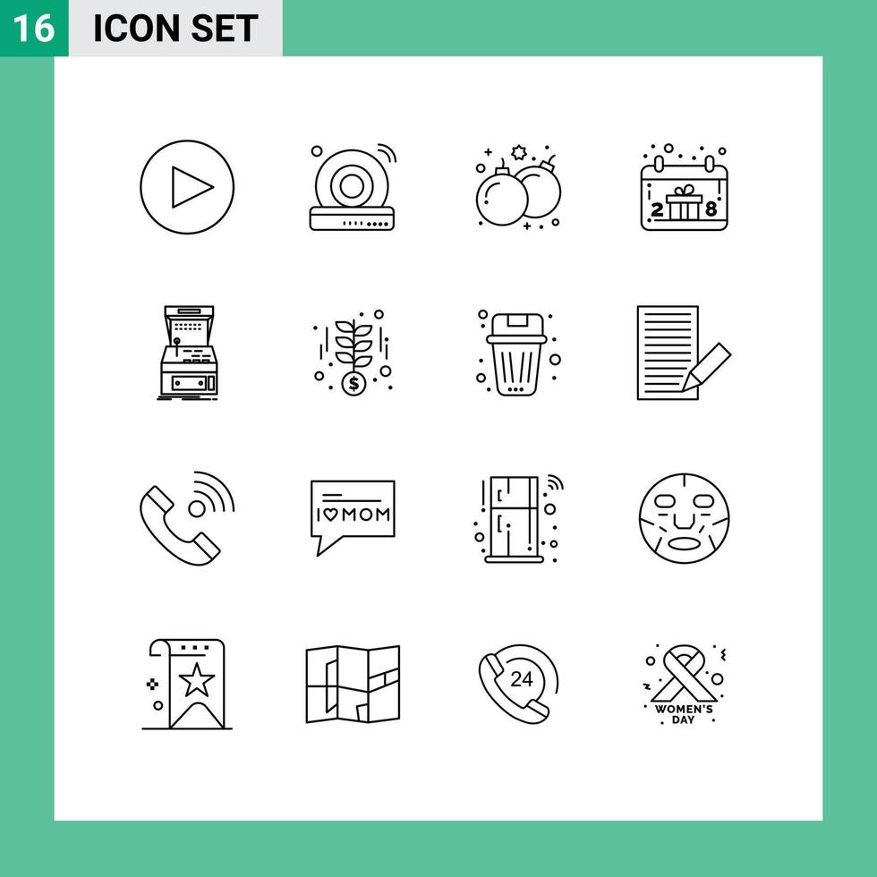 Pictogram Set of 16 Simple Outlines of machine console game arcade hand Editable Vector Design Elements