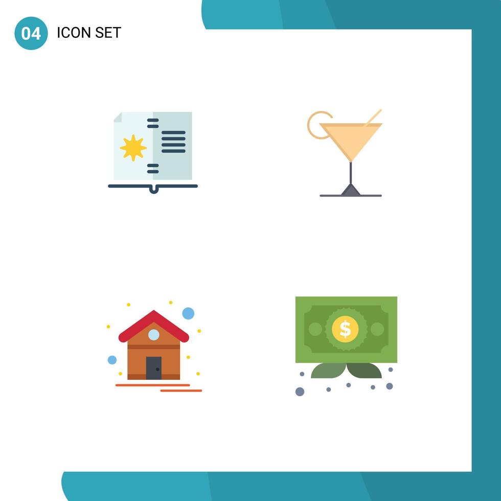 Set of 4 Modern UI Icons Symbols Signs for book homepage instruction lemon business Editable Vector Design Elements