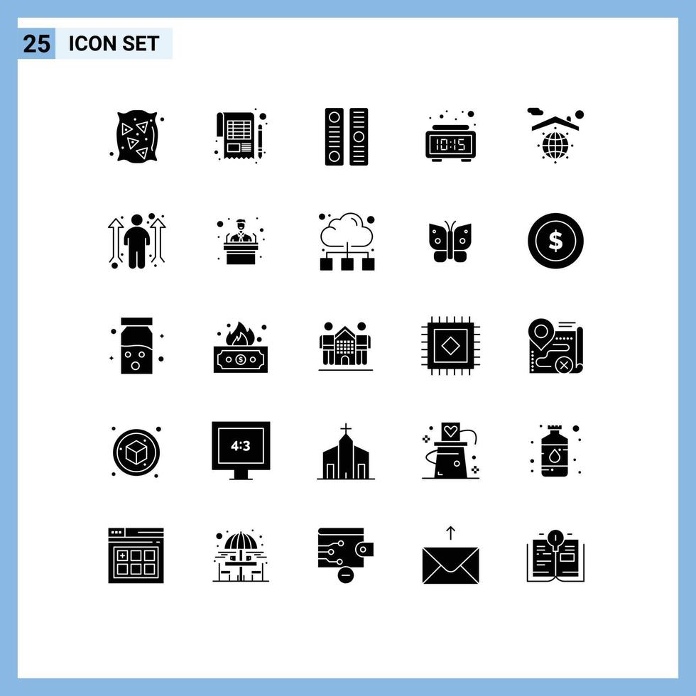 25 Universal Solid Glyphs Set for Web and Mobile Applications earth digital tax clock file cover Editable Vector Design Elements