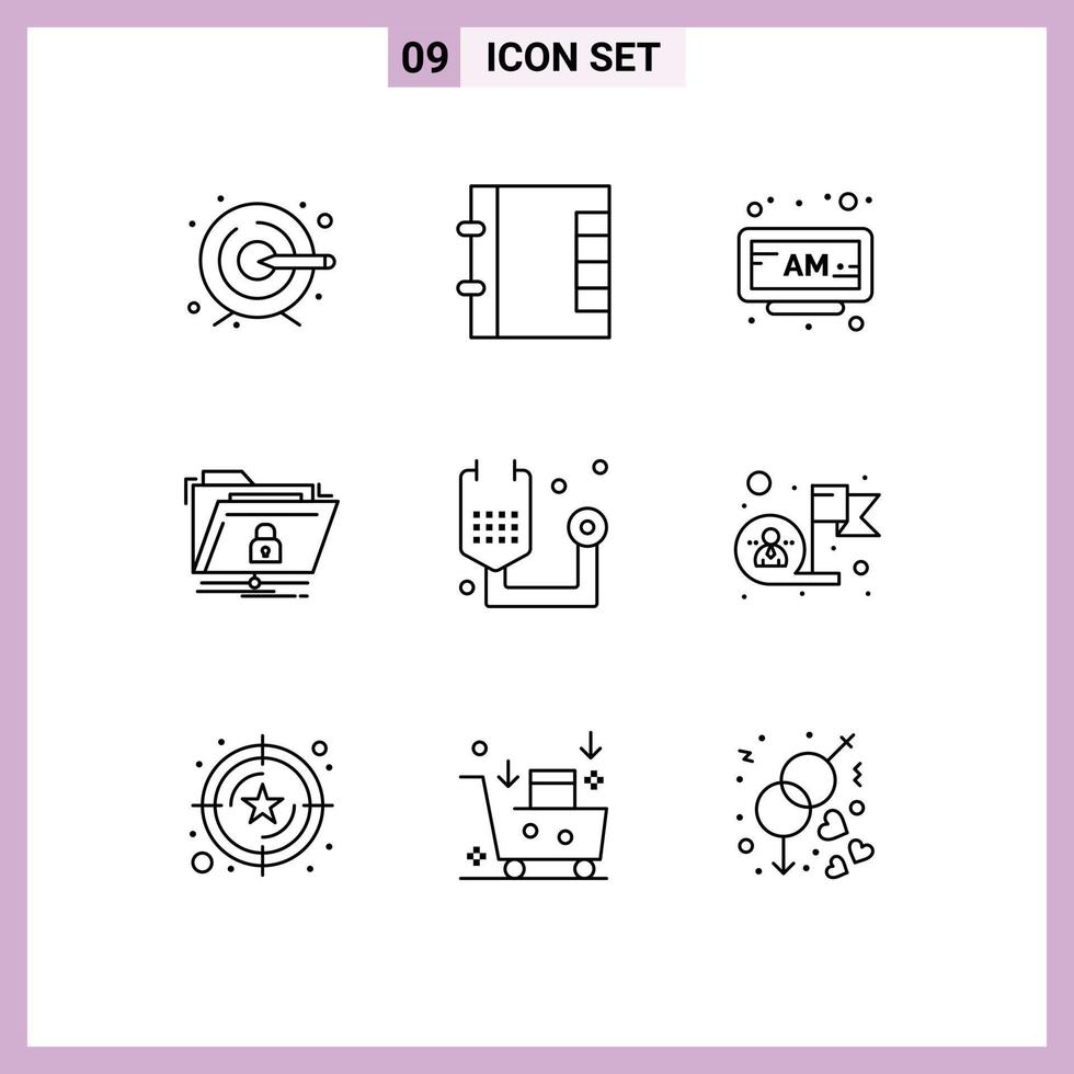 Universal Icon Symbols Group of 9 Modern Outlines of form disease clock secure folder Editable Vector Design Elements
