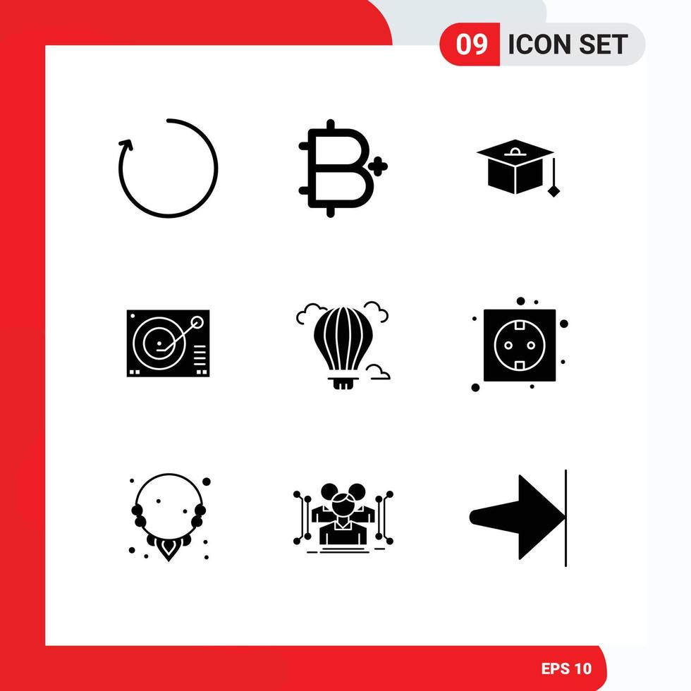 Set of 9 Modern UI Icons Symbols Signs for air record cap player device Editable Vector Design Elements