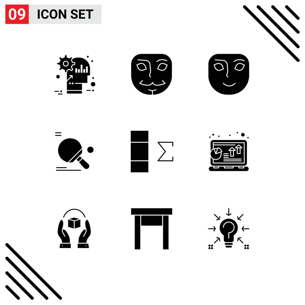 Modern Set of 9 Solid Glyphs and symbols such as column ping pong emotion table tennis racket Editable Vector Design Elements
