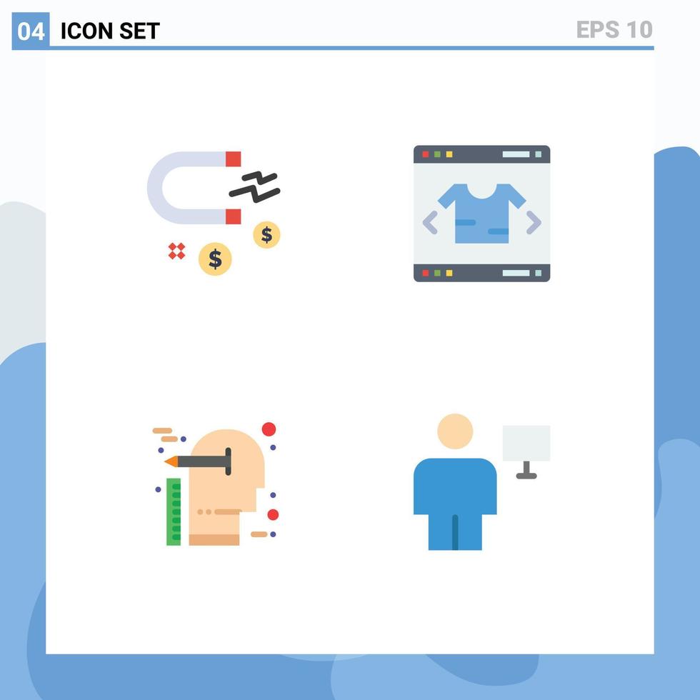Set of 4 Vector Flat Icons on Grid for attracting idea magnet online scale Editable Vector Design Elements