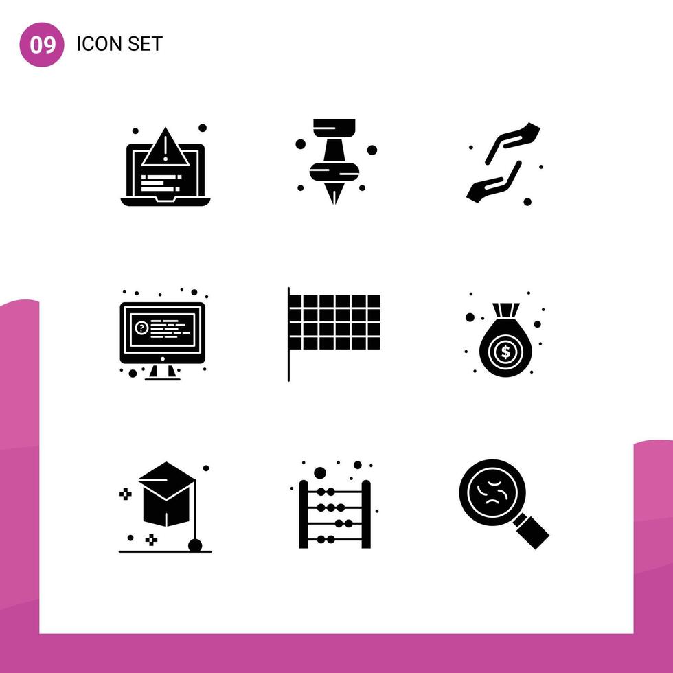 Group of 9 Modern Solid Glyphs Set for mark chat faith question computer Editable Vector Design Elements Free Vector