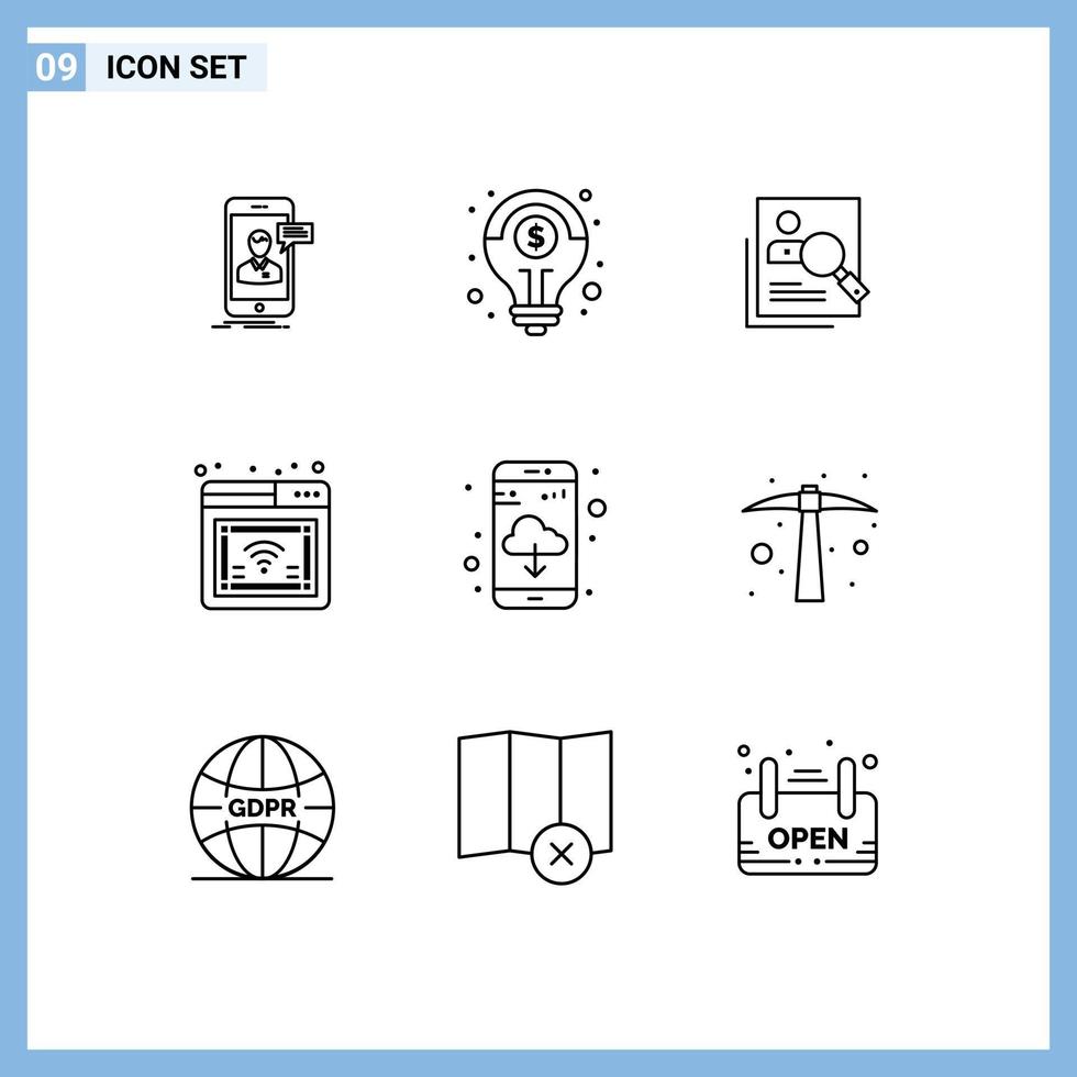 Editable Vector Line Pack of 9 Simple Outlines of internet resume solution resources hunting Editable Vector Design Elements Free Vector