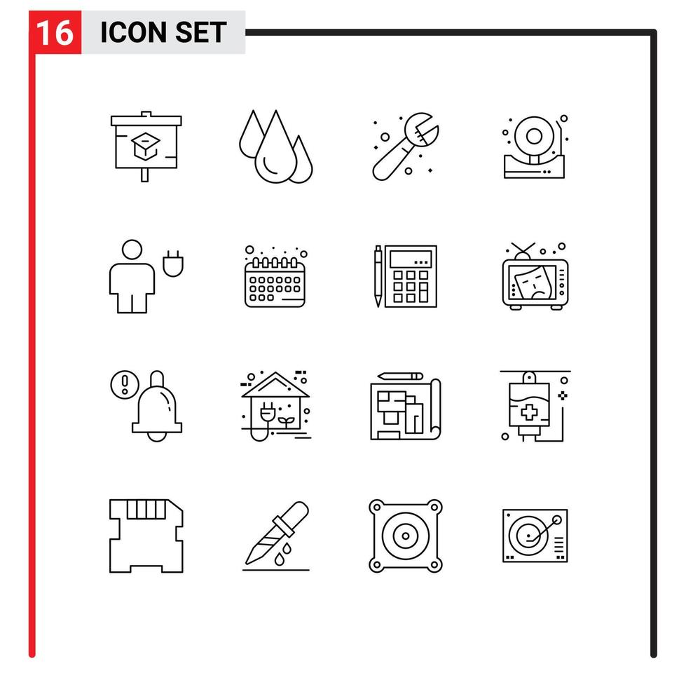 Mobile Interface Outline Set of 16 Pictograms of avatar bell study alert system Editable Vector Design Elements Free Vector