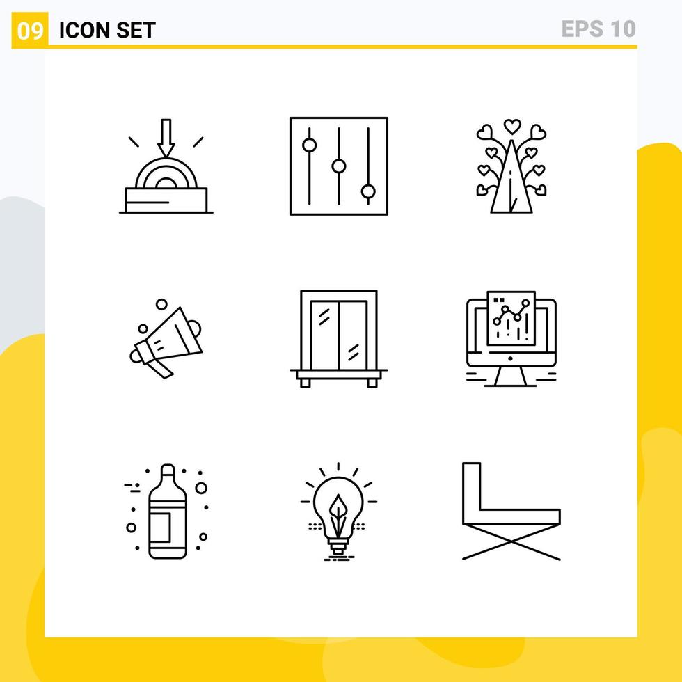 Mobile Interface Outline Set of 9 Pictograms of google analytics valentine window shopping Editable Vector Design Elements Free Vector