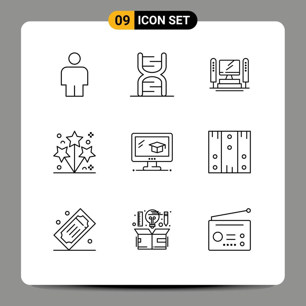 Set of 9 Vector Outlines on Grid for graduation education computing spark light Editable Vector Design Elements