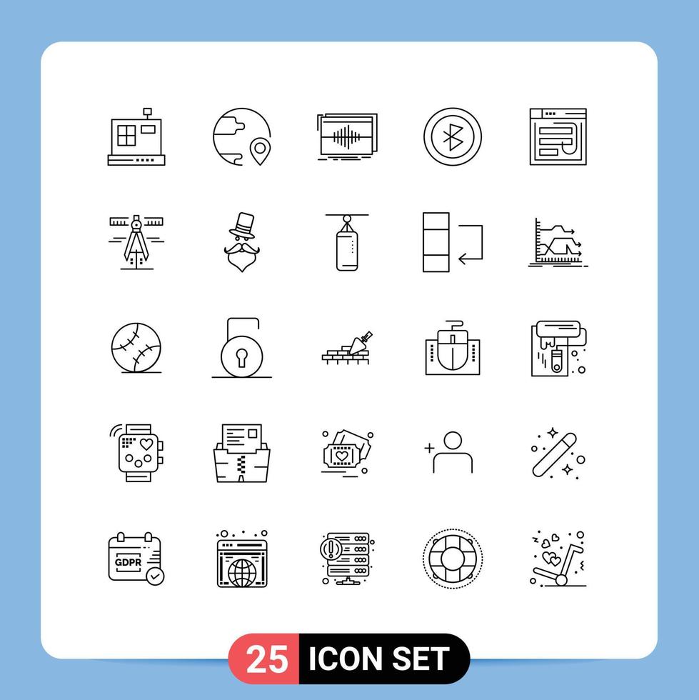 25 Universal Lines Set for Web and Mobile Applications hack signal audio connection wave Editable Vector Design Elements
