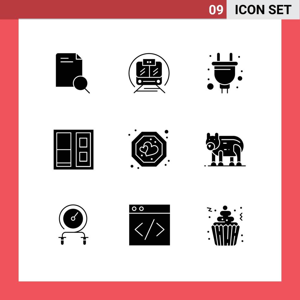 9 Universal Solid Glyphs Set for Web and Mobile Applications label favorite electric door building Editable Vector Design Elements