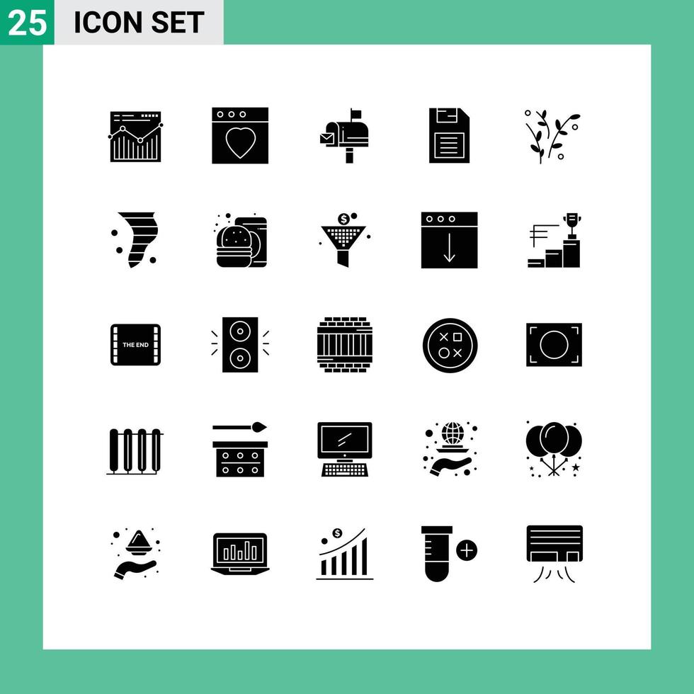 25 User Interface Solid Glyph Pack of modern Signs and Symbols of nature storage device box sd card memory chip Editable Vector Design Elements