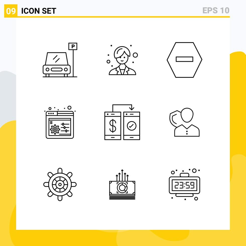 Pictogram Set of 9 Simple Outlines of wallet mobile denied cashless settings Editable Vector Design Elements Free Vector