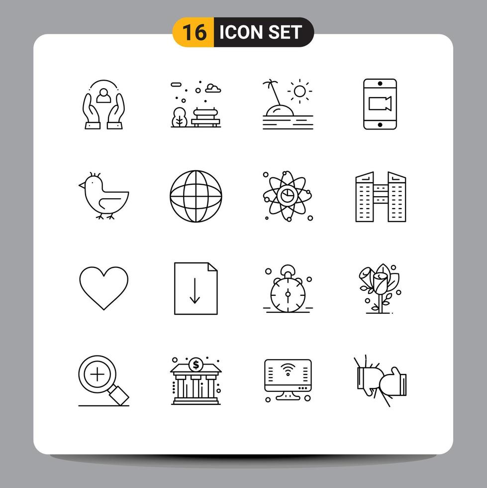 User Interface Pack of 16 Basic Outlines of swan duck holiday camera mobile Editable Vector Design Elements Free Vector and Free SVG