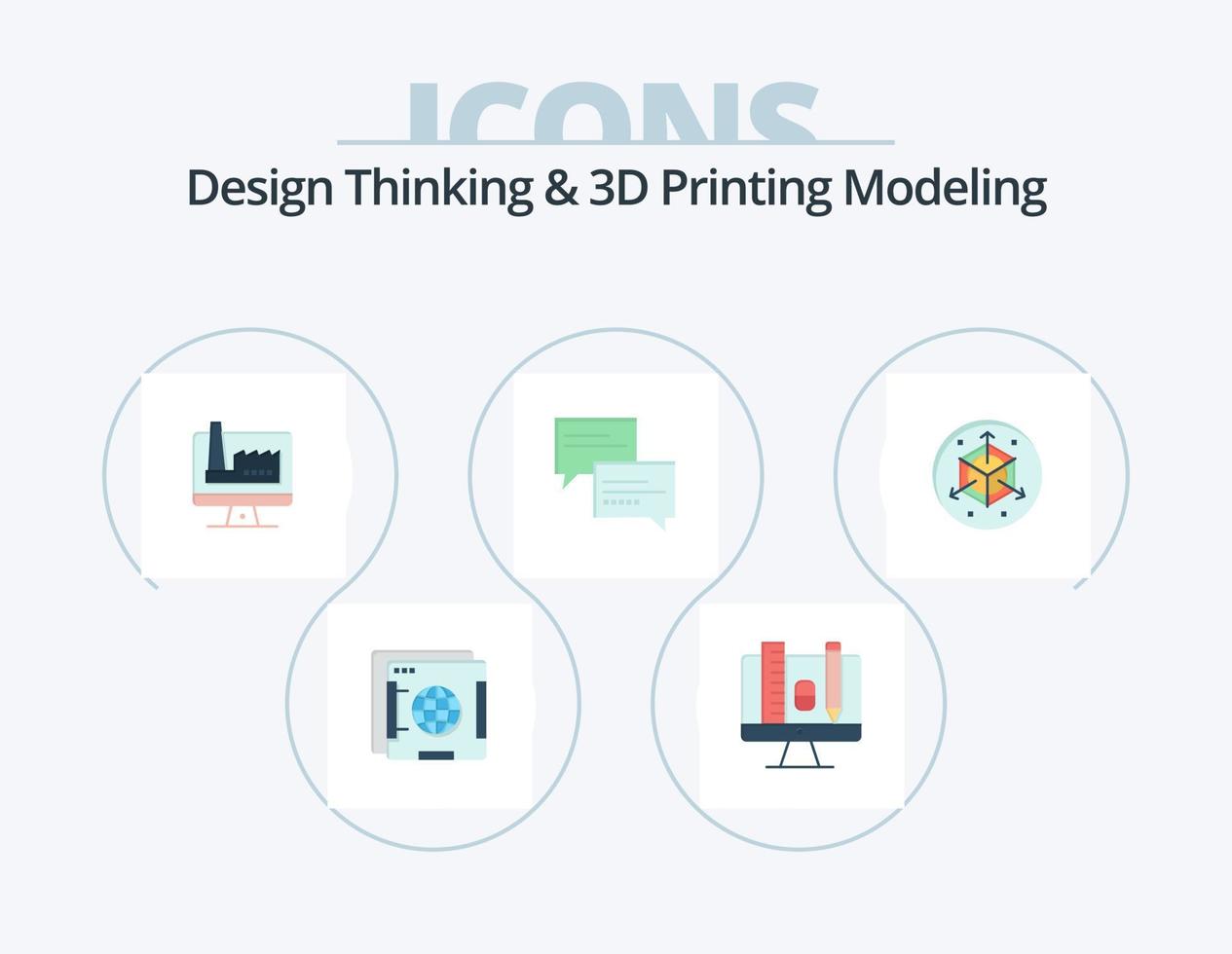 Design Thinking And D Printing Modeling Flat Icon Pack 5 Icon Design. modification. education. computer. message . chat vector