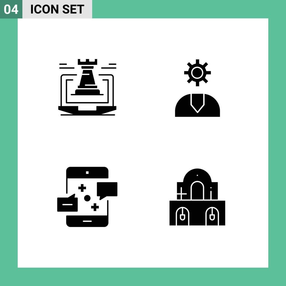 4 Solid Glyph concept for Websites Mobile and Apps castle support laptop customer connection Editable Vector Design Elements