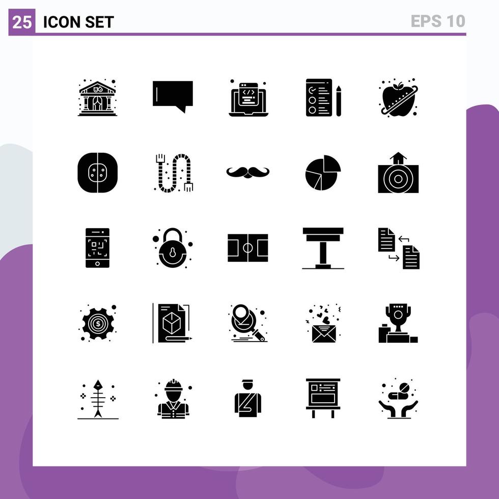 25 Universal Solid Glyphs Set for Web and Mobile Applications healthy apple html job search cv Editable Vector Design Elements