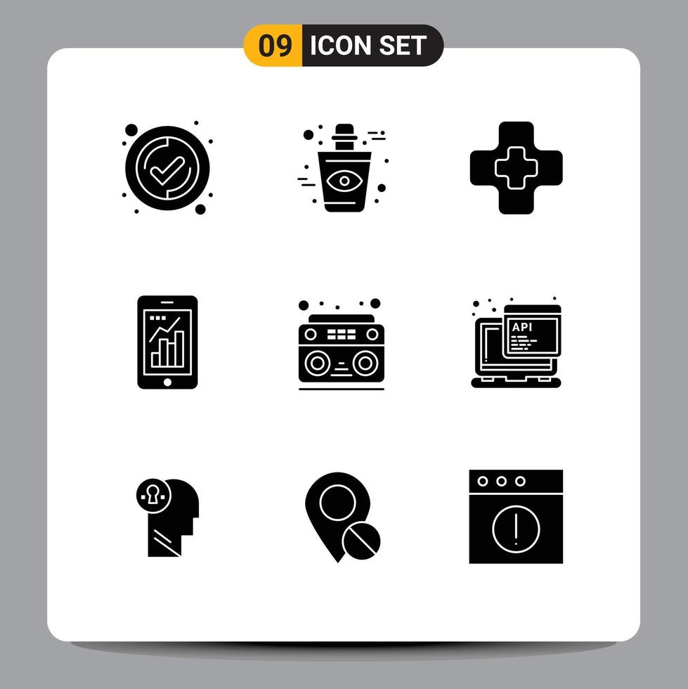 9 Universal Solid Glyphs Set for Web and Mobile Applications sound audio medical mobile graph infographic Editable Vector Design Elements Free Vector and Free SVG
