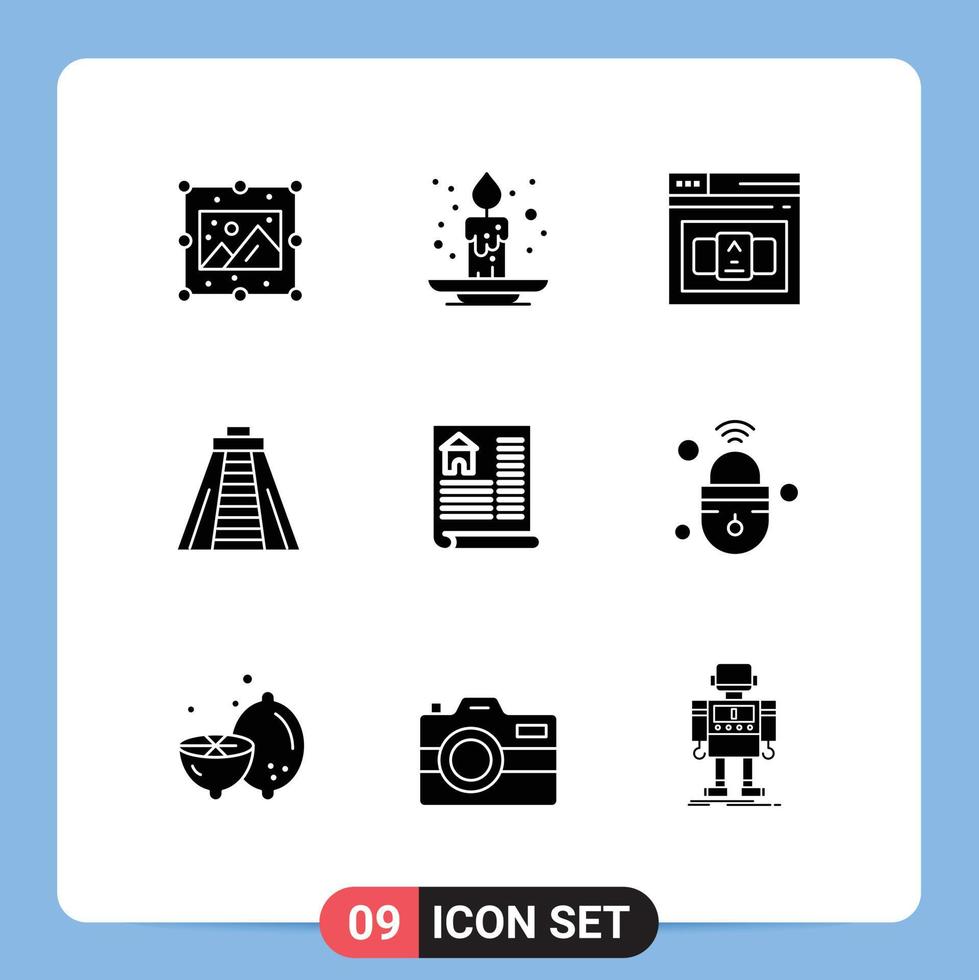 9 User Interface Solid Glyph Pack of modern Signs and Symbols of real document business monument chichen itza Editable Vector Design Elements