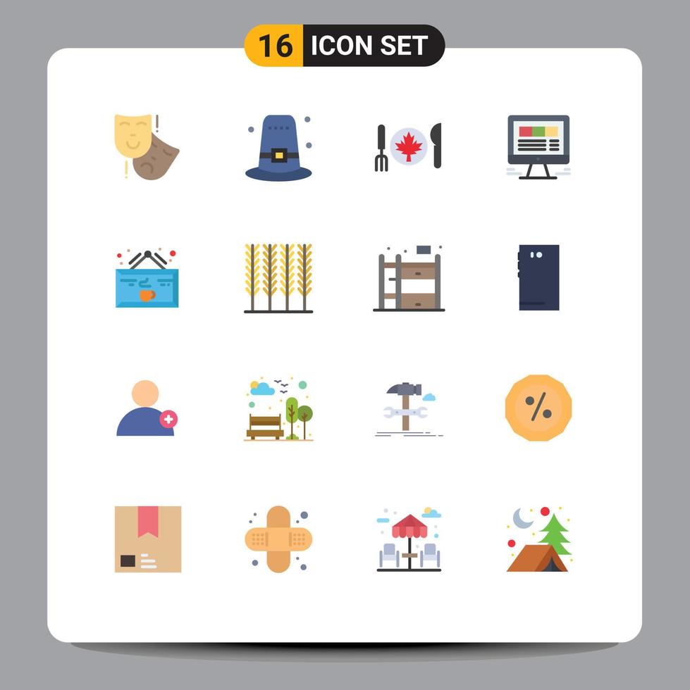 Set of 16 Modern UI Icons Symbols Signs for drink internet dinner website browser Editable Pack of Creative Vector Design Elements Free Vector and Free SVG