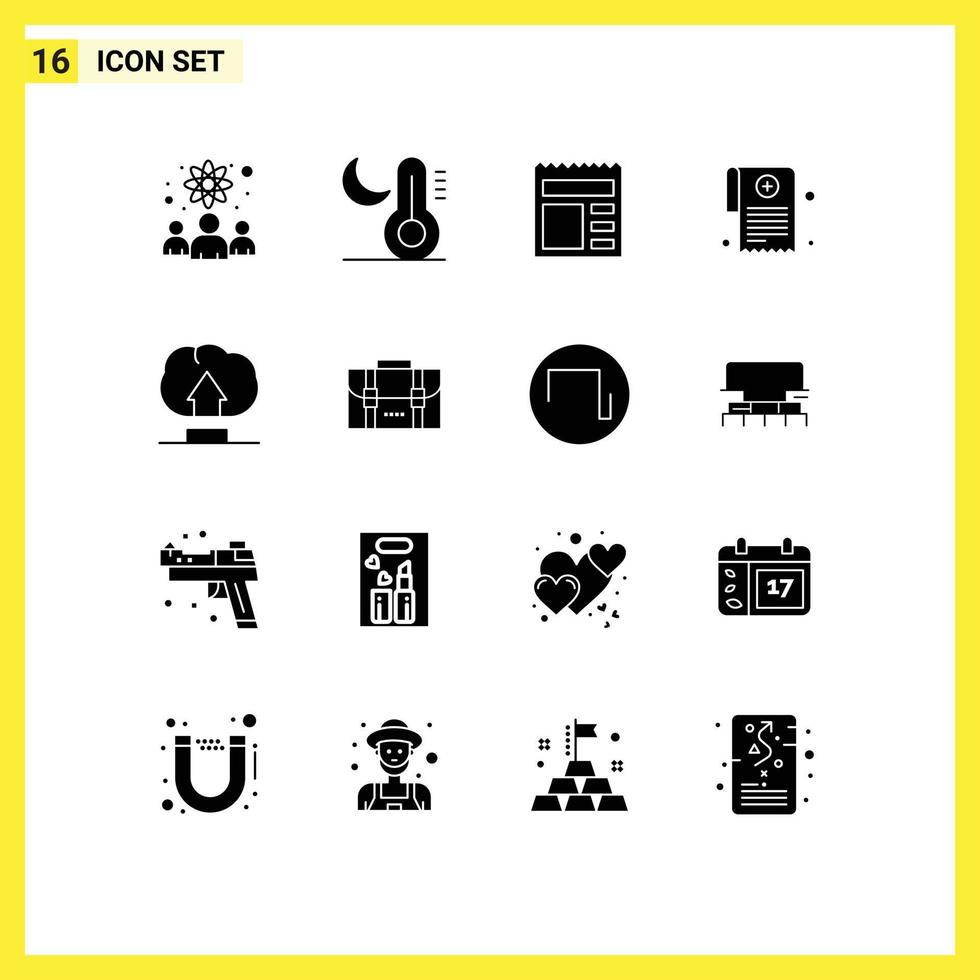 Set of 16 Vector Solid Glyphs on Grid for upload report document prescription medical report Editable Vector Design Elements