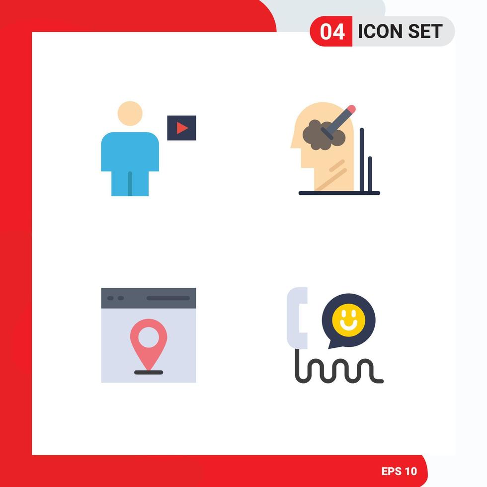 4 Universal Flat Icons Set for Web and Mobile Applications avatar solution playback pen interface Editable Vector Design Elements