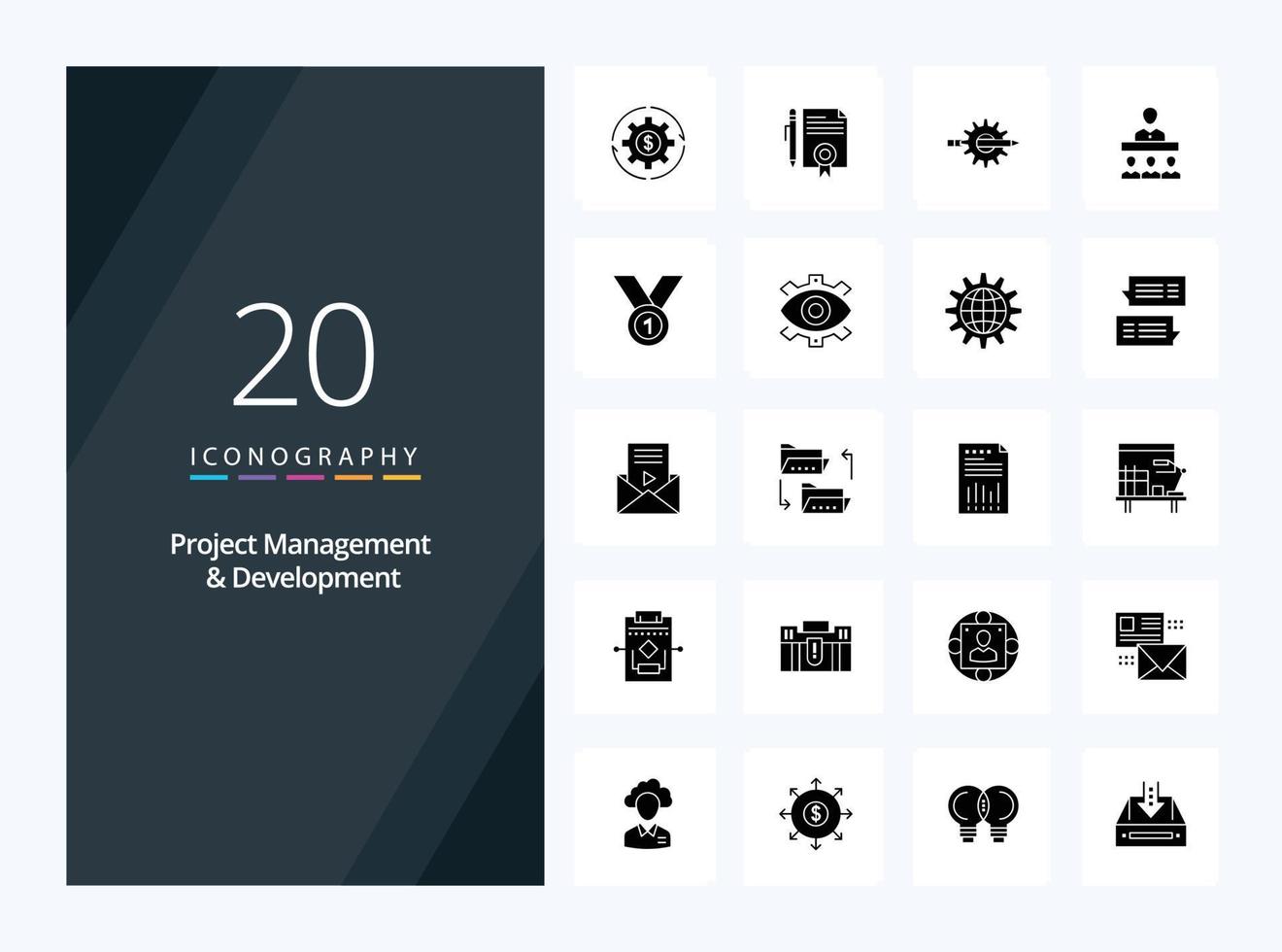 20 Project Management And Development Solid Glyph icon for presentation vector