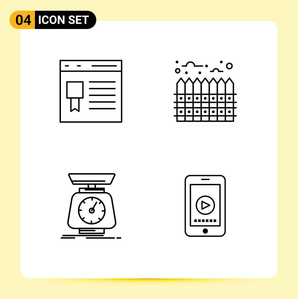 Mobile Interface Line Set of 4 Pictograms of browser implementation page heating scale Editable Vector Design Elements Free Vector and Free SVG