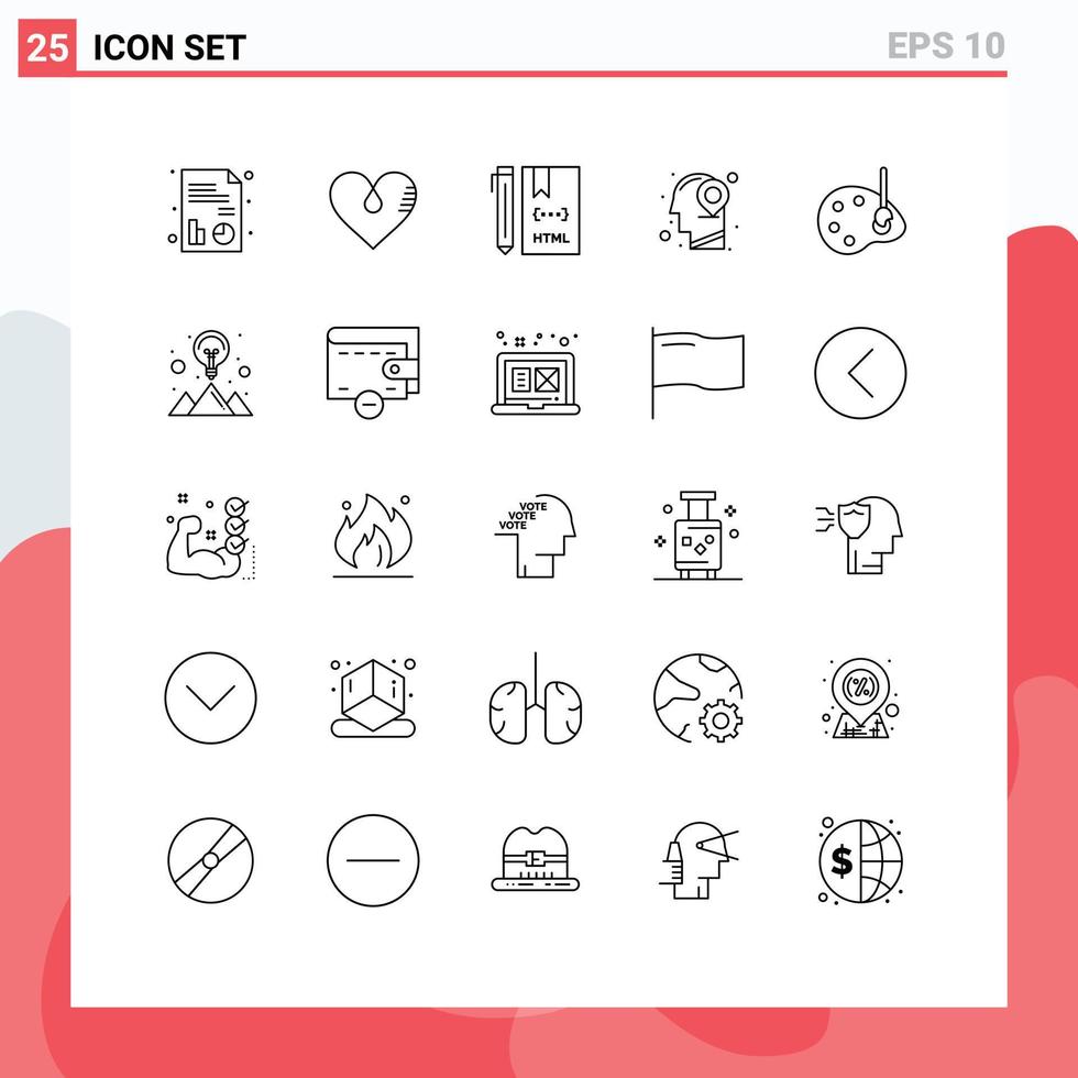 User Interface Pack of 25 Basic Lines of art map code location html Editable Vector Design Elements