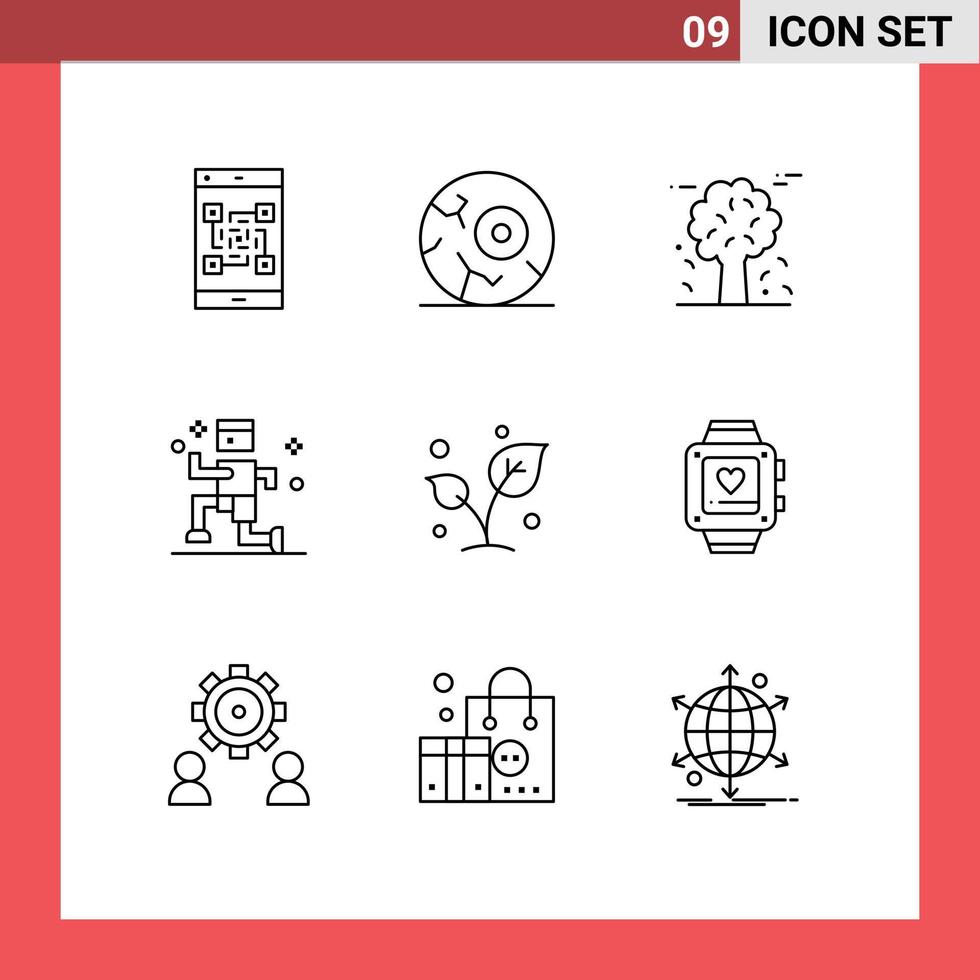Mobile Interface Outline Set of 9 Pictograms of leaf jogging space exercise pine trees Editable Vector Design Elements