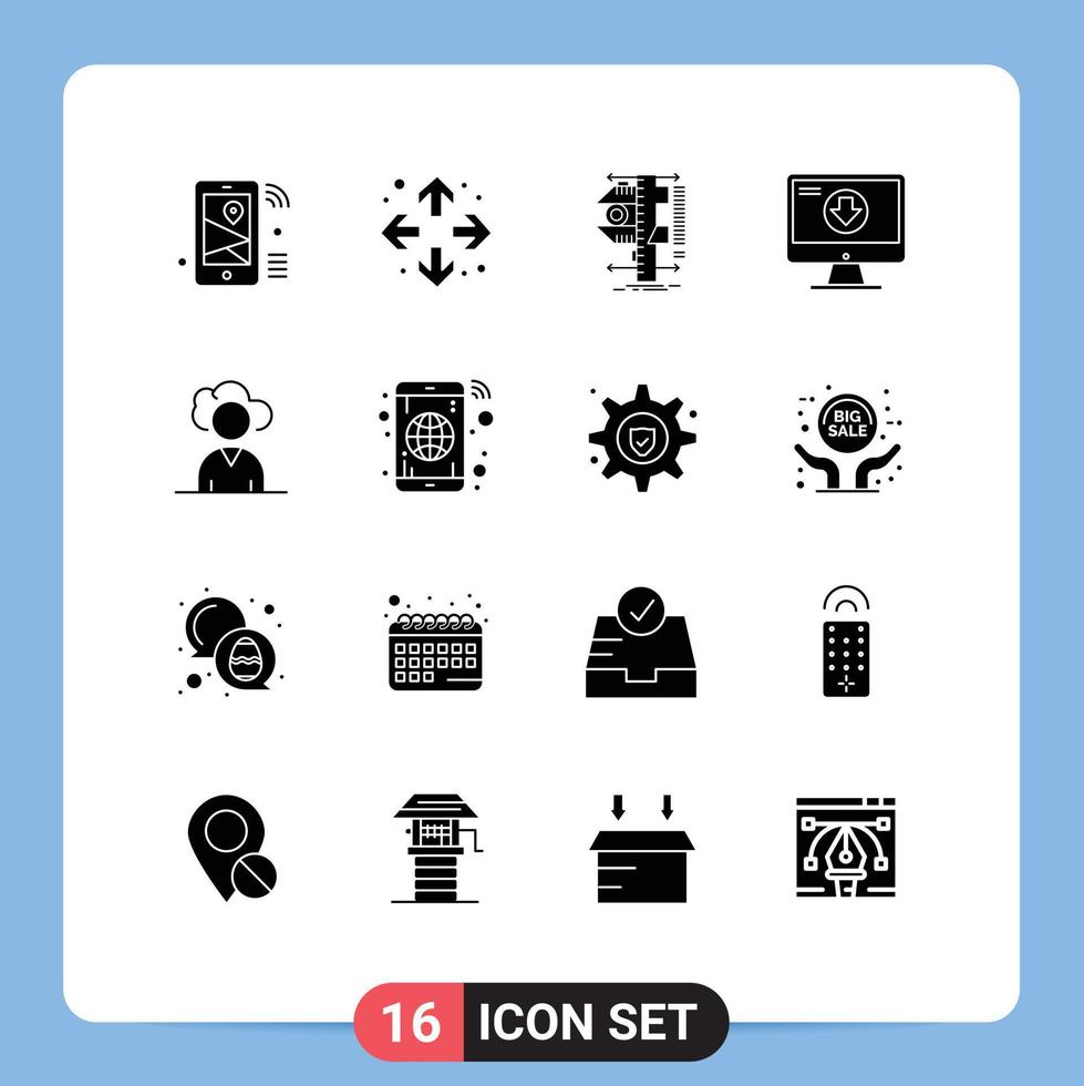 Solid Glyph Pack of 16 Universal Symbols of game dlc measure content measurement Editable Vector Design Elements Free Vector and Free SVG