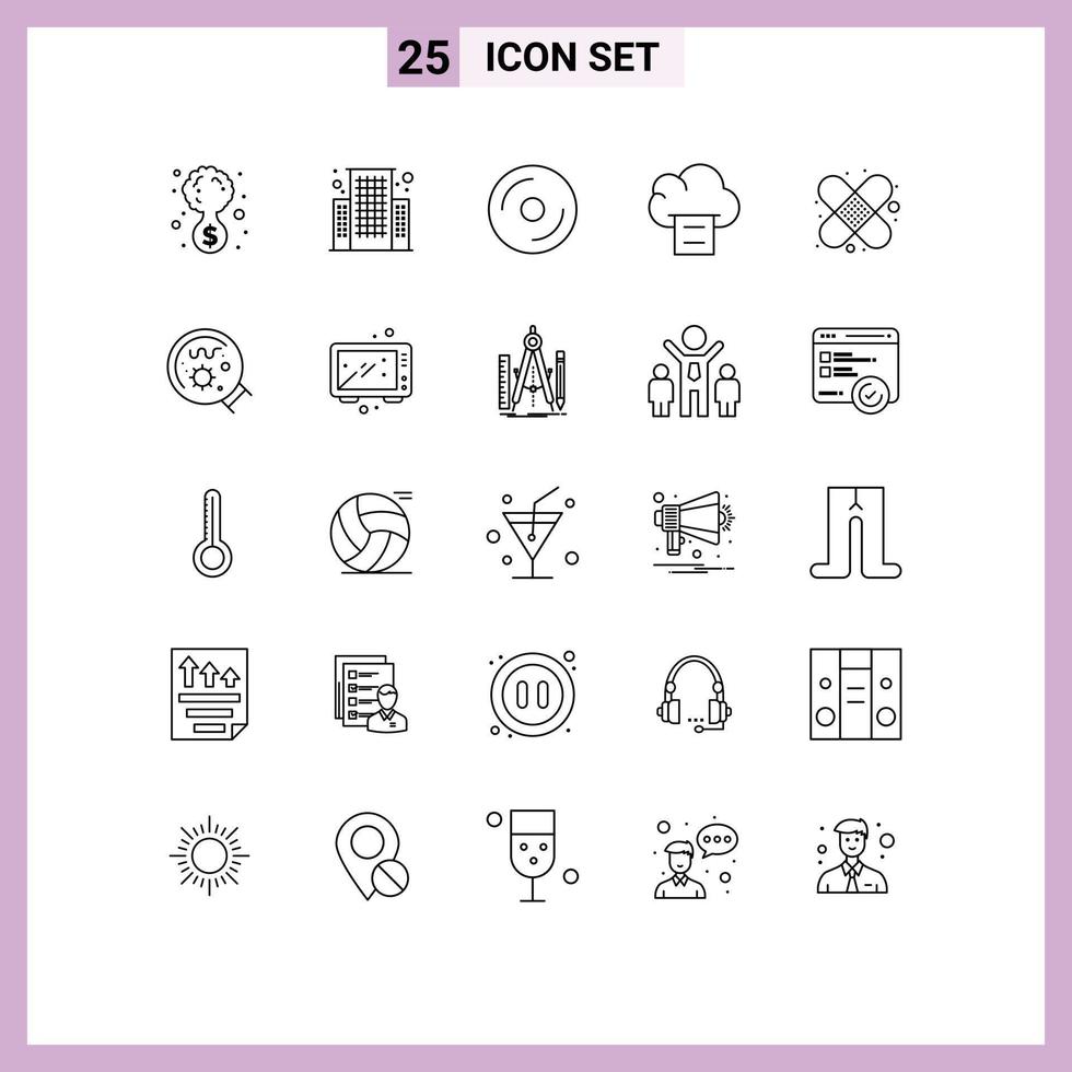25 Universal Lines Set for Web and Mobile Applications first aid band aid disk print cloud Editable Vector Design Elements