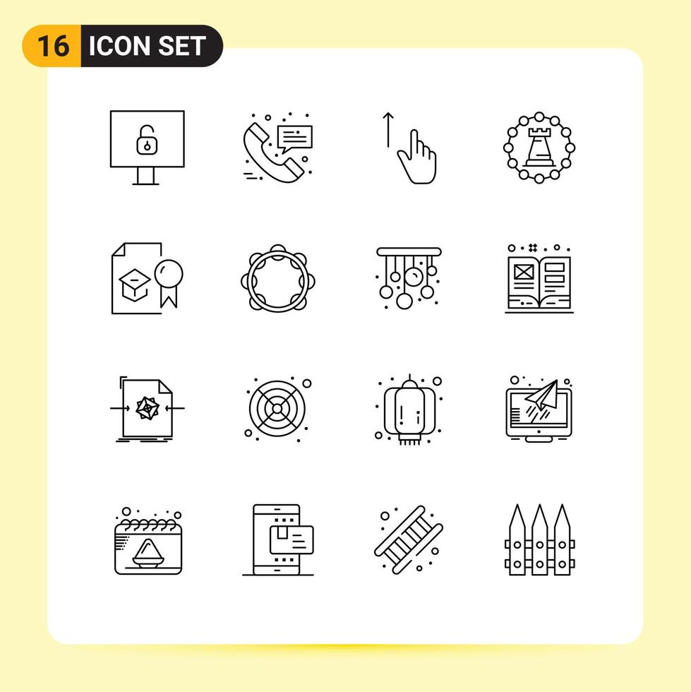 16 User Interface Outline Pack of modern Signs and Symbols of certificate rook finger tower castle Editable Vector Design Elements