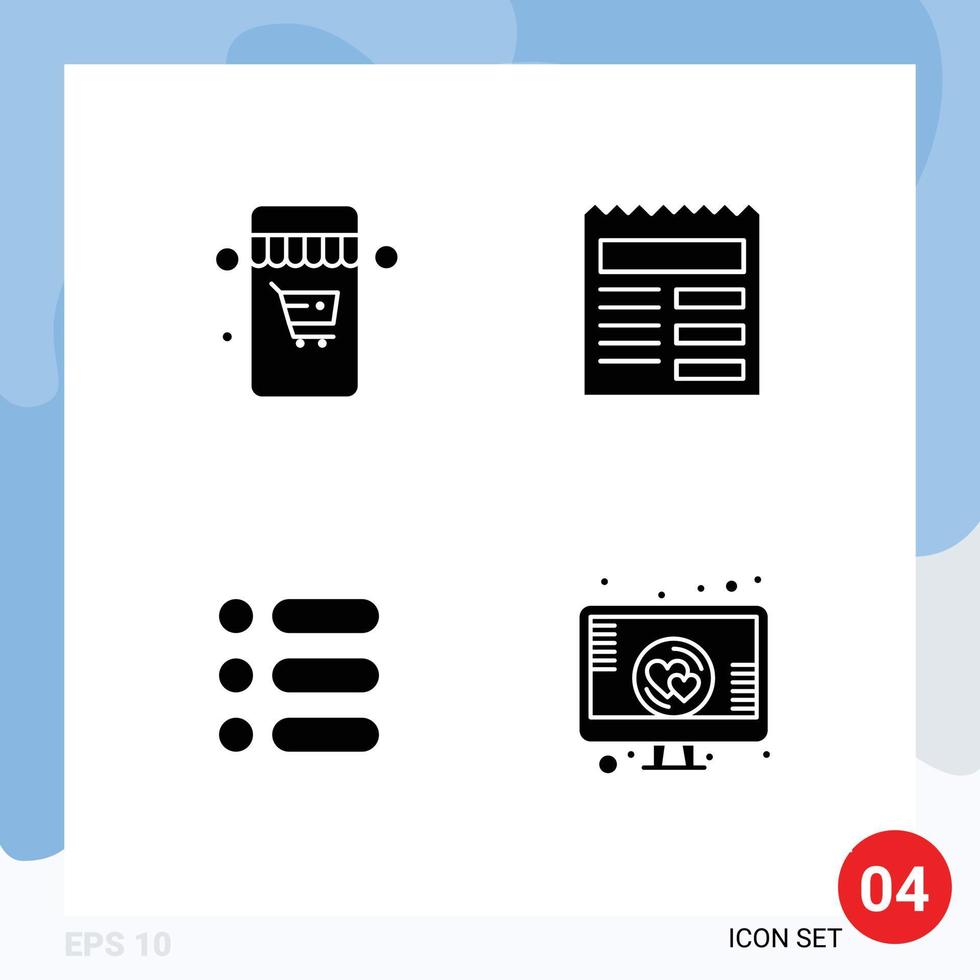 Pictogram Set of 4 Simple Solid Glyphs of online text document ui love Editable Vector Design Elements