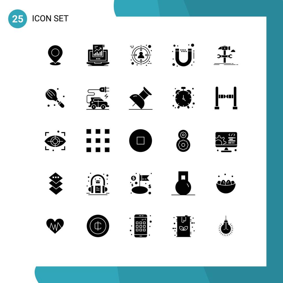 Mobile Interface Solid Glyph Set of 25 Pictograms of magnet customer analytics business computer Editable Vector Design Elements Free Vector