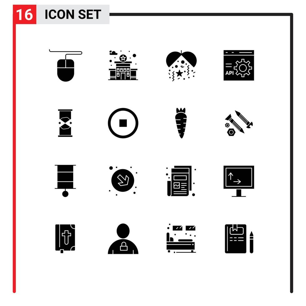 16 Universal Solid Glyph Signs Symbols of sand timer browser time programming Editable Vector Design Elements