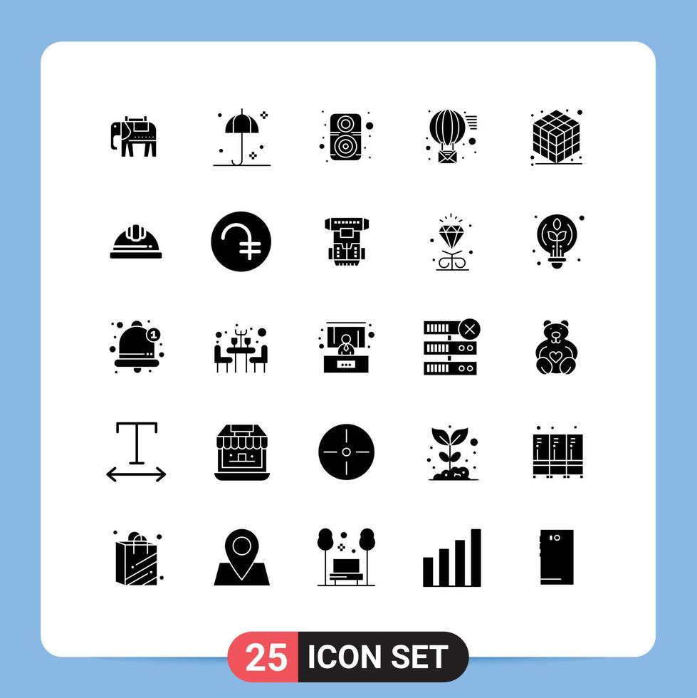 25 Universal Solid Glyphs Set for Web and Mobile Applications layer cube hardware send message Editable Vector Design Elements