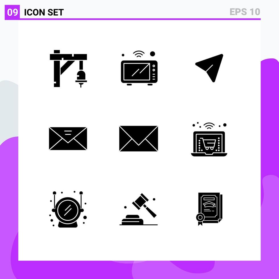 Set of 9 Modern UI Icons Symbols Signs for multimedia mail wifi inbox computer Editable Vector Design Elements