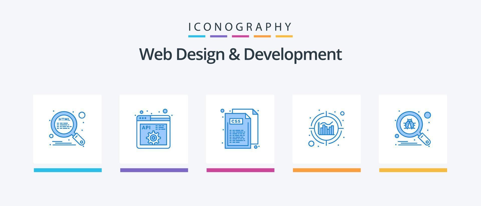 Web Design And Development Blue 5 Icon Pack Including search. bug. code. information. analytics. Creative Icons Design vector