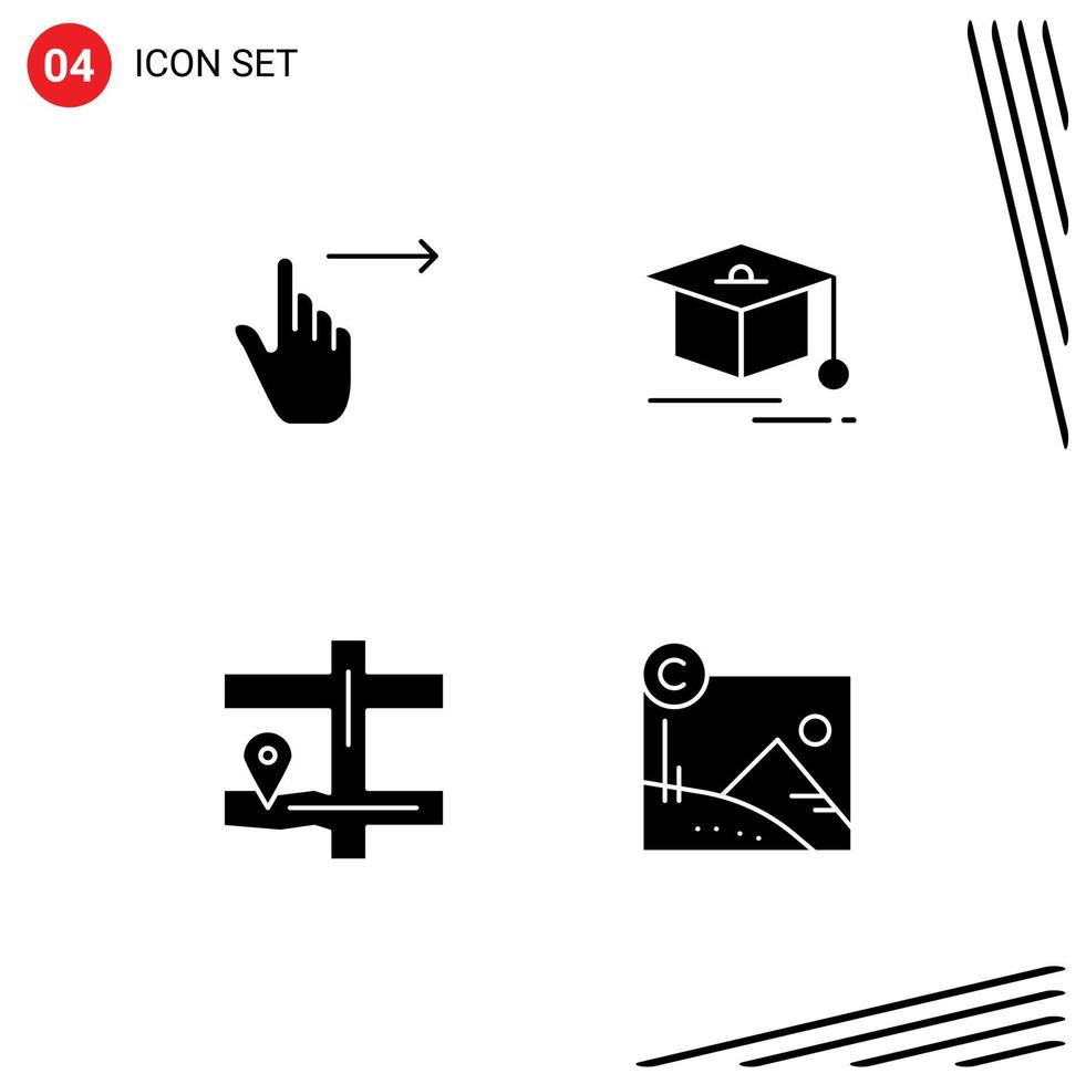 Pack of 4 Modern Solid Glyphs Signs and Symbols for Web Print Media such as finger navigation slide education artwork Editable Vector Design Elements