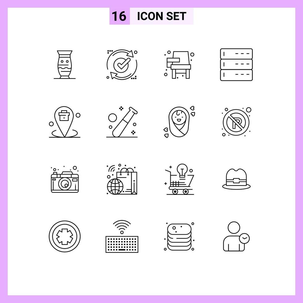 Group of 16 Outlines Signs and Symbols for data school good learning desk Editable Vector Design Elements Free Vector